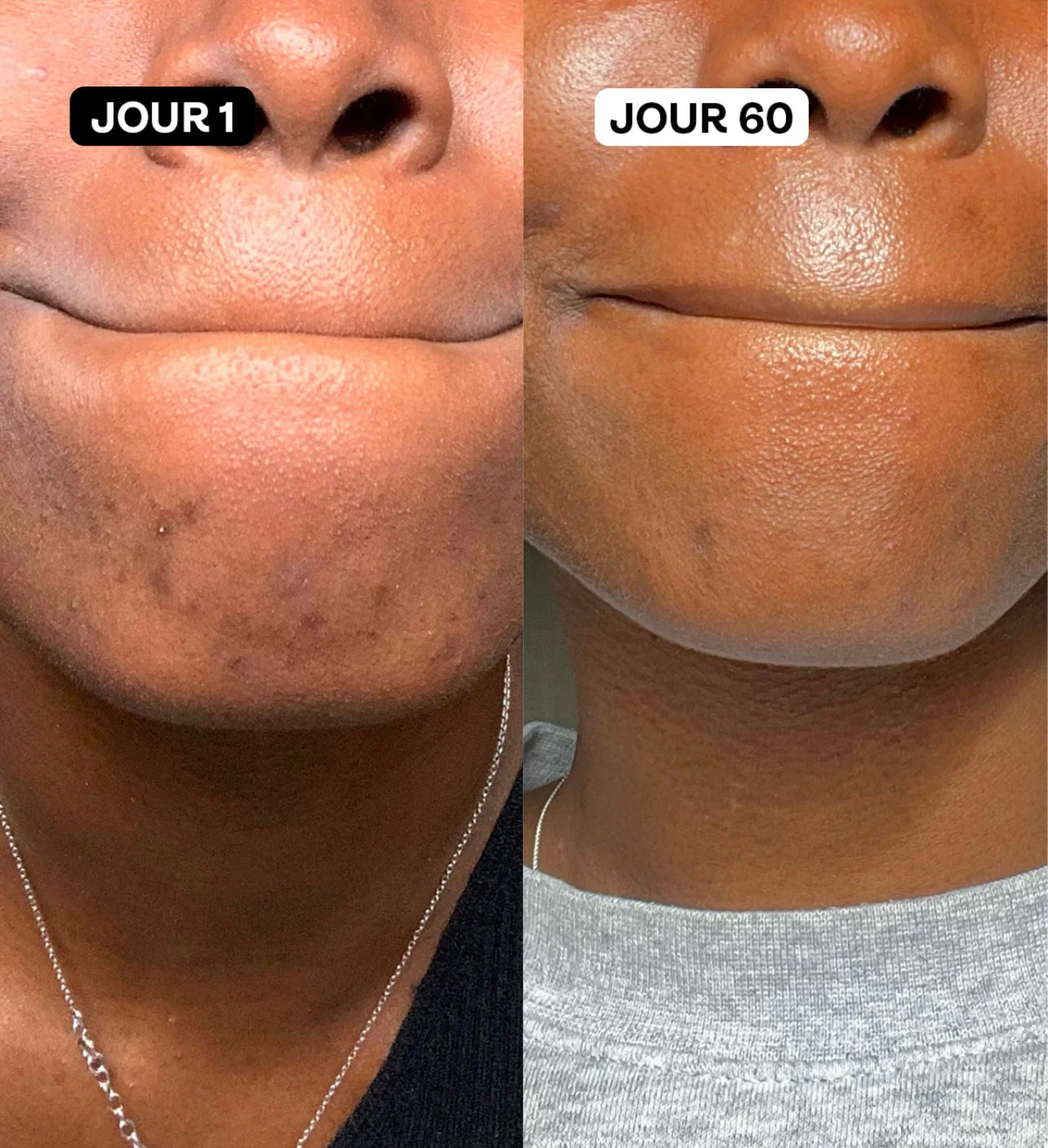 Les premiers résultats sont visibles dès la première semaine : peau plus lisse, taches estompées et pores moins visibles. Les effets s’intensifient avec une utilisation régulière.